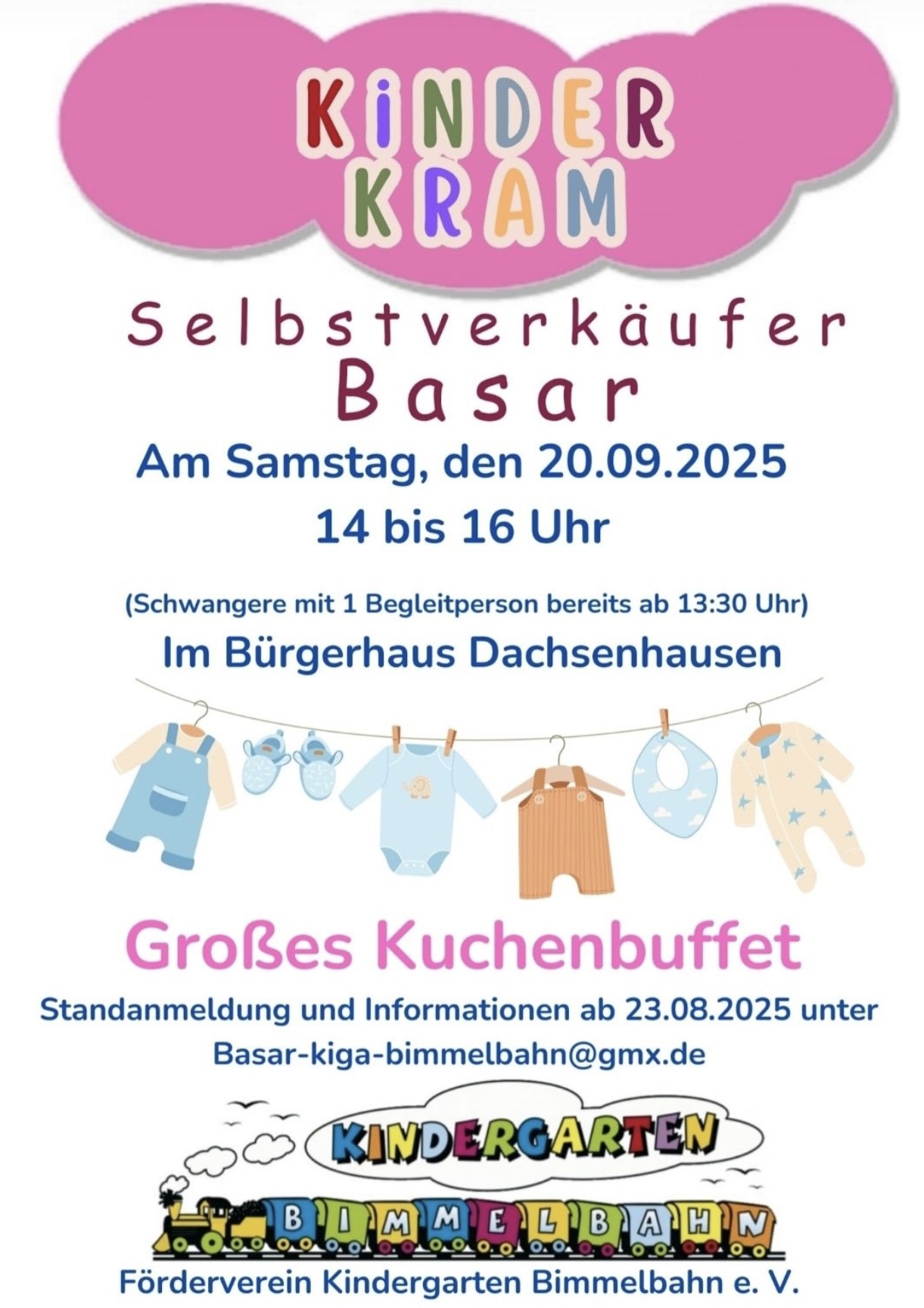 Standanmeldung und Informationen ab 23.08.2025 unter Basar-kiga-bimmelbahn@gmx.de