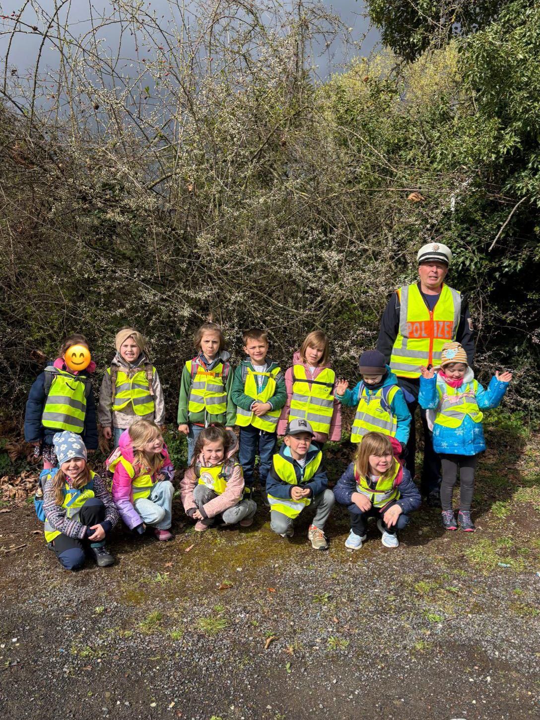 Nach der Besichtigung übten die Vorschulkinder gemeinsam mit Herrn Feldt, wie man sicher eine Straße überquert und worauf man im Straßenverkehr achten muss.